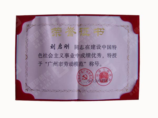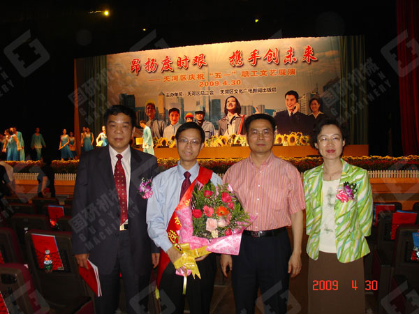 4月28日上午,广州市委大礼堂张灯结彩、锣鼓喧天,一派喜气洋洋。广州市委、市政府庆?!拔逡弧惫世投隰呃投7逗拖冉灞碚么蠡嵩谡饫锞傩?。广州市国研机械设备制造有限公司市场部经理刘启刚同志作为天河区6万多家民营企业唯一当选的广州市劳动模范出席了表彰大会。广东省委常委广州市委书记朱小丹、市长张广宁等省市领导亲自为刘启刚等劳动模范颁发广州市劳动模范奖状和荣誉证书并合影留念。
