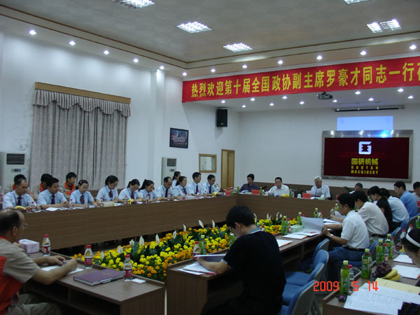 在观看了公司发展历程的影视片后,罗豪才副主席发表了重要讲话。他说,这次广州之行共考察了三家企业,前两家都是国有大型企业,分别是广州钢铁厂和广州广船国际股份有限公司,国研机械是我们调研的唯一一家民营企业,看到你们国研人精神振奋,生产经营状况良好,尤其是看到你们外来务工人员生活、工作都比较满意时,我们感到很欣慰,国研机械在不到十年的时间里发展成集团化的规模,而且发展势头很好,真的很不容易,只要你们继续努力,企业一定能够做强做大。目前我们国家越来越重视民营企业,也越来越关心我们外来工的生存与发展的问题。你们提出了很多具有代表性的建议,这些建议提的很好,很典型,我会把这些宝贵的建议带回去。